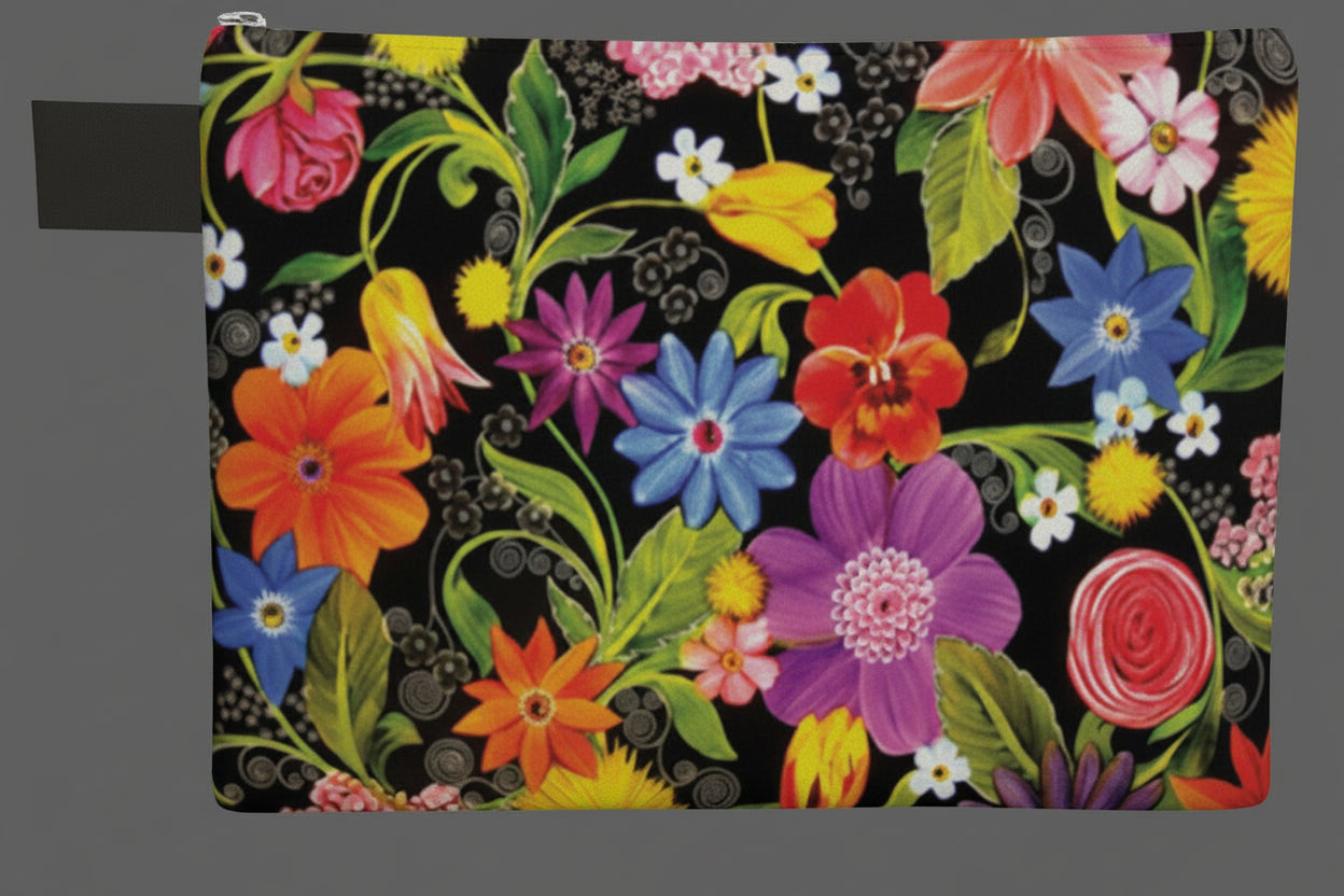 Indigo denim lining provides a soft structure for this carry-all.  100% polyester textured canvas shell withstands everyday use while looking great!  Features long lasting nickel zipper and vegan leather zipper pull.  Available in two sizes!