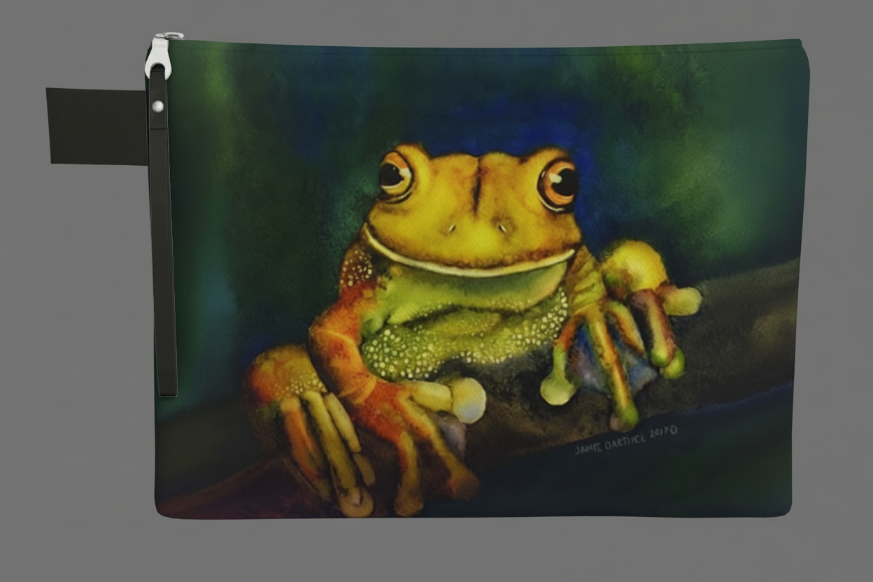 Features one of Jamie Barthel's 'famous' frogs, taken from a glass chandelier painting.