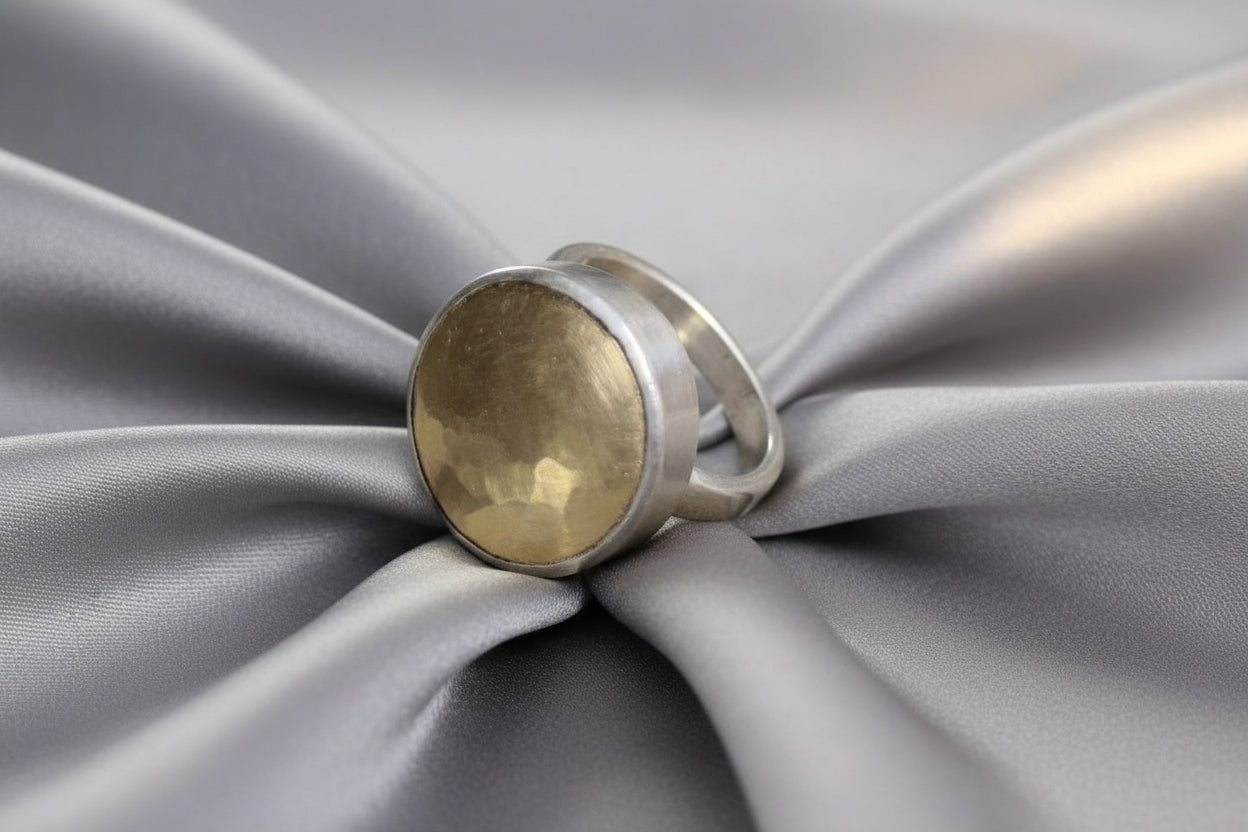 Hammered Goldfill Domed Bezel Set Ring