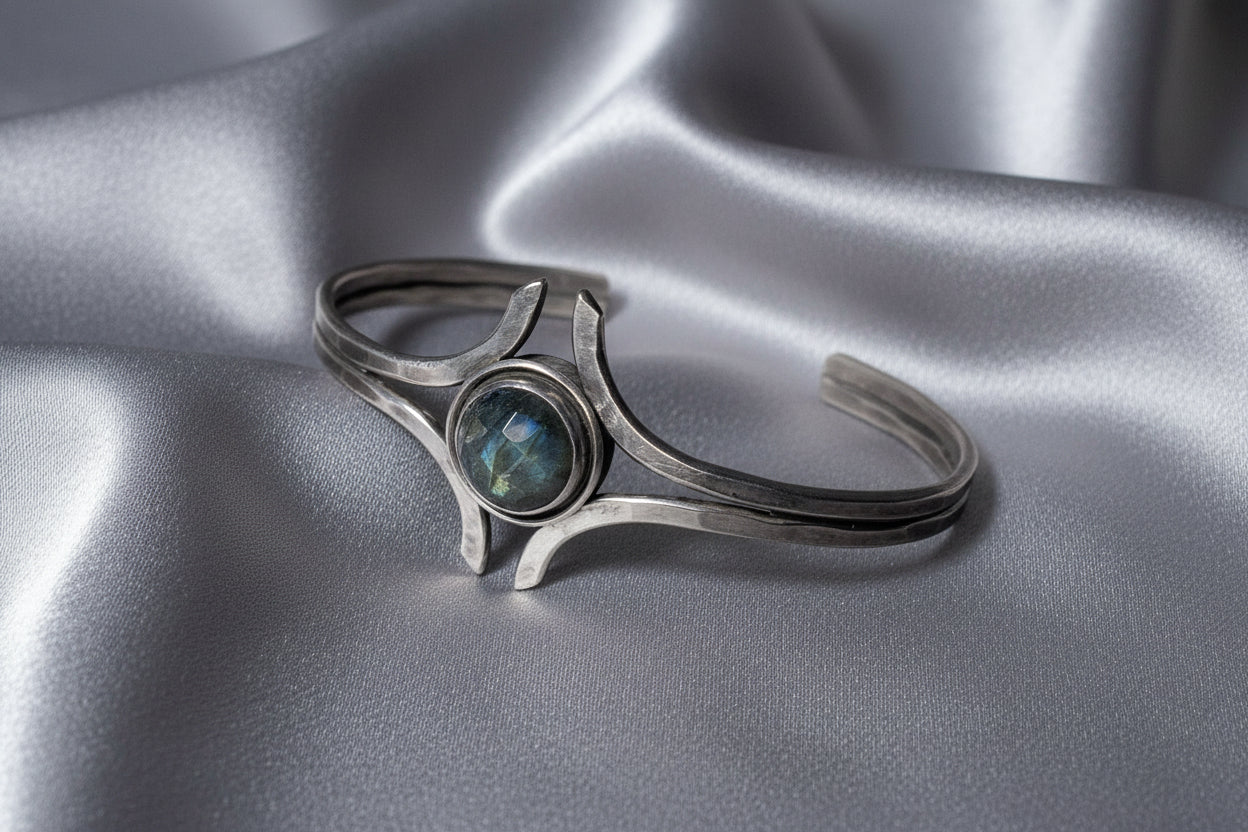 Sterling Flared Bezel Set Labradorite Cuff
