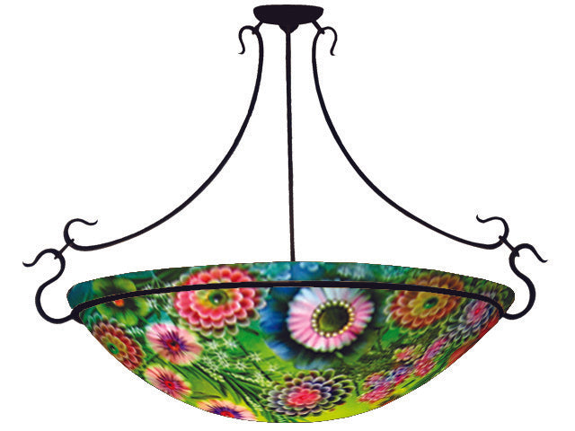 Materials: High-quality, hand slumped glass with reverse hand-painting; metal fixtures (Semi-flush and Rod Hardware available in 4 finishes: Gunmetal Black, Matte Black, Antique Bronze or Brushed Pewter. Ring Hardware available in Matte Black).