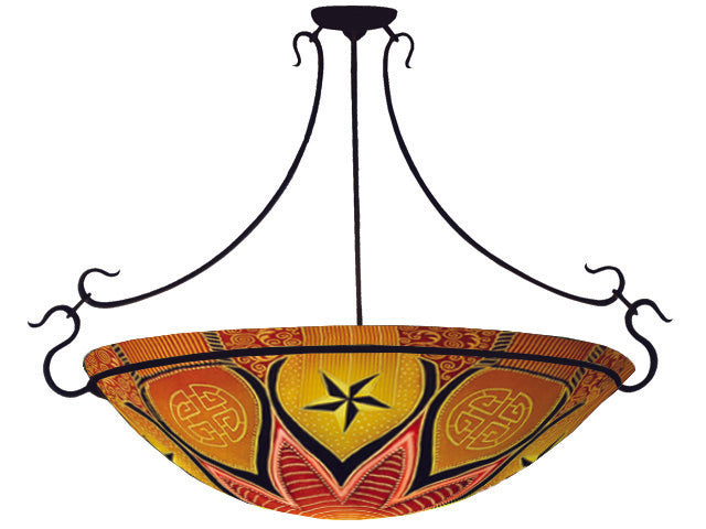 Materials: High-quality, hand slumped glass with reverse hand-painting; metal fixtures (Semi-flush and Rod Hardware available in 4 finishes: Gunmetal Black, Matte Black, Antique Bronze or Brushed Pewter. Ring Hardware available in Matte Black).