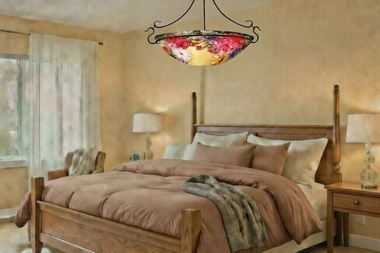 Rose Garden Reverse Hand Painted Glass Chandelier by Jamie Barthel- Custom Artisan Lighting from Woodstock, New York