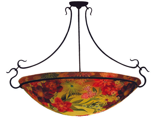 Materials: High-quality, hand slumped glass with reverse hand-painting; metal fixtures (Semi-flush and Rod Hardware available in 4 finishes: Gunmetal Black, Matte Black, Antique Bronze or Brushed Pewter. Ring Hardware available in Matte Black).
