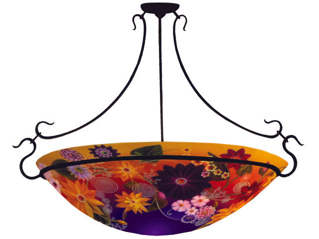 Materials:  High-quality, hand slumped glass with reverse hand-painting; metal fixtures (Semi-flush and Rod Hardware available in 4 finishes:  Gunmetal Black, Matte Black, Antique Bronze or Brushed Pewter.  Ring Hardware available in Matte Black).