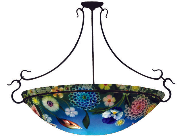 Summer Bouquet Reverse Hand Painted Glass Chandelier by Jamie Barthel- Custom Artisan Lighting from Woodstock, New York
