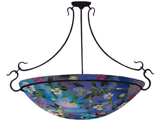 Sweet Peas & Tea Roses Reverse Hand Painted Glass Chandelier by Jamie Barthel- Custom Artisan Lighting from Woodstock, New York