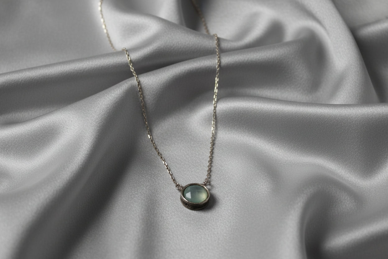 Aqua Chalcedony and Sterling Pixie Necklace