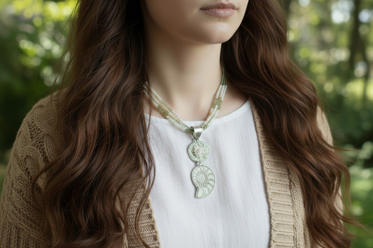 Koi Fish and Conch Fossil Necklace