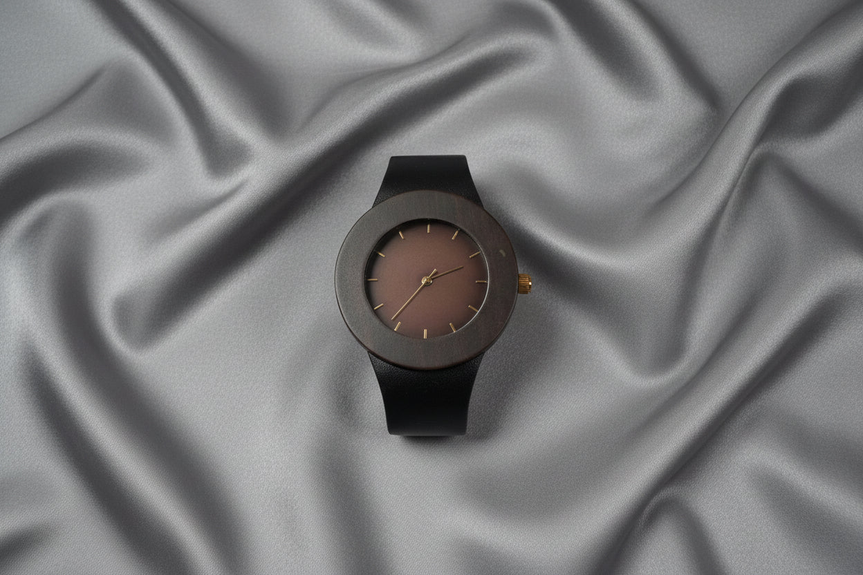 To retain the beauty of the all-natural wood and leather, we've kept branding to an invisible minimum. The delicate watch hands glide along a truly one-of-a kind watch face that comes with or without hour markings.