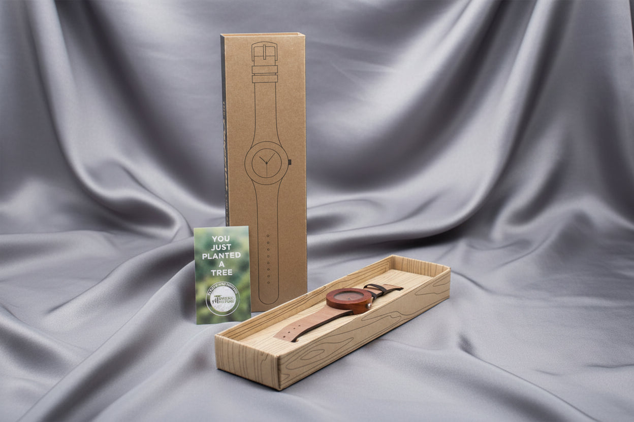 With a Makore wood strap and a solid Red Sanders body, this timepiece is as beautiful as it is earth friendly. The craftsmanship involved in designing with these natural materials is self evident - and the result is a sophisticated, eco-conscious design that is over 80% biodegradable.