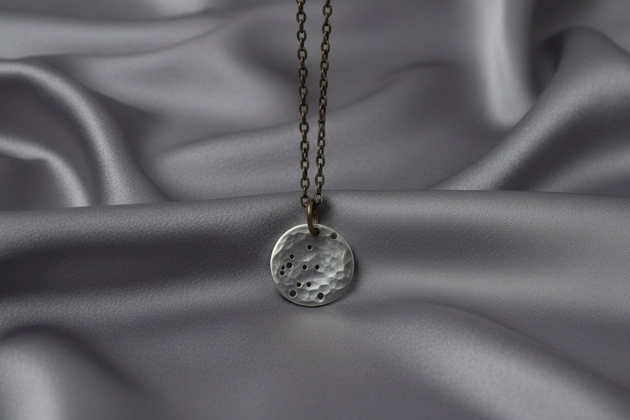 18" Bronze chain.  Available in 1" diameter Sterling Silver or Bronze and 5/8" Sterling Silver.